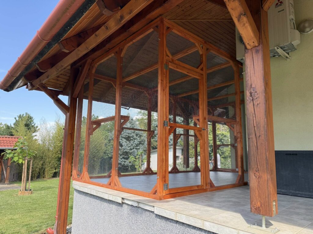 El a construit un țarc pentru pisici pe un cadru realizat din șipci egalizate de 48 × 48 mm, astfel încât animalele noastre de companie să fie în siguranță.”
